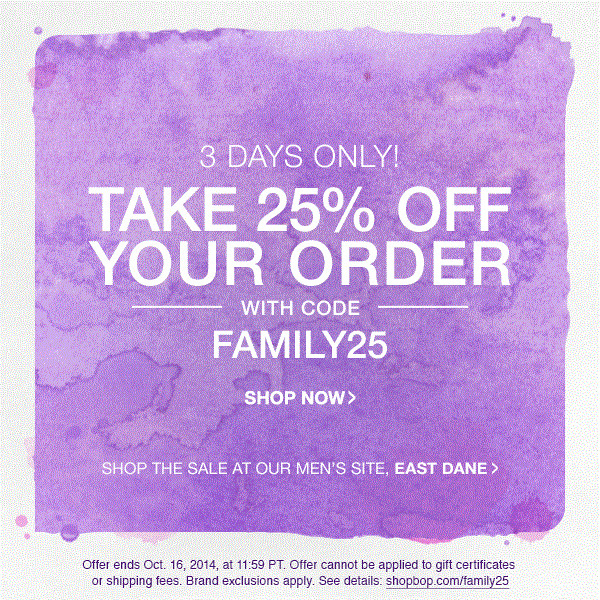 The Shopbop Friends & Family sale starts today - take 25% off your entire order with code FAMILY25.
